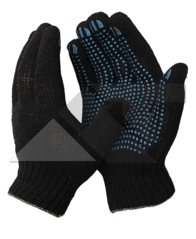 Перчатки трикотажные 5-нитей с ПВХ Точка 7,5кл Черные (ТекстКонтракт) 10/200